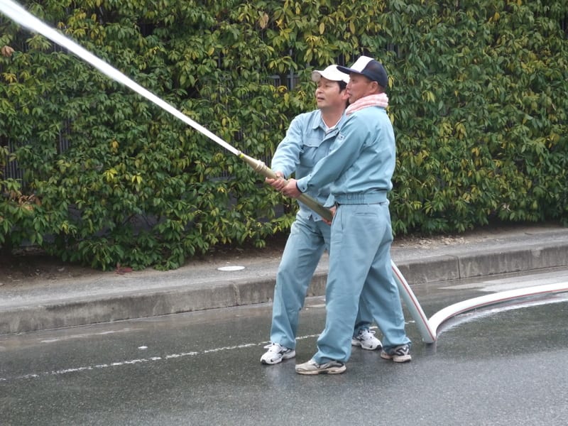 屋外散水栓の放水訓練も行いました。