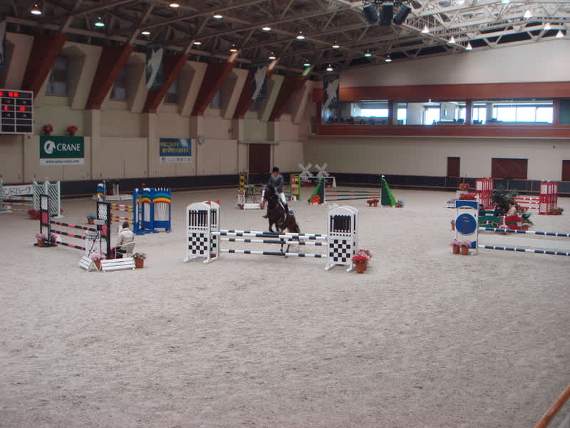 ホースランドパークの屋内競技の特徴として、屋内競技場でのみ使用する豪華な障害物や装飾、また観客席と馬場が非常に近く、間近で障害飛越競技を観戦できることがあげられます。