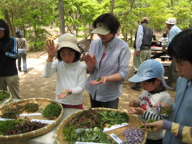 「いたどり」・「たらのめ」・「あかめかしわ」・「からすのえんどう」などなど、食用になるんだって!みなさん熱心に採取しました。