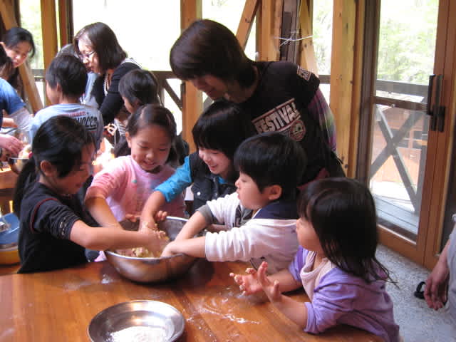 まず、パンの生地作りで~す。まぜまぜ…おいしくなぁれ