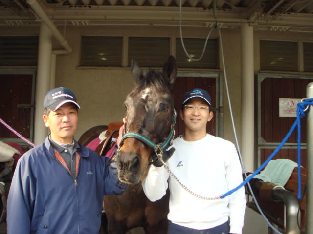練習後に蹄洗場にて(右側は黒河職員です。)