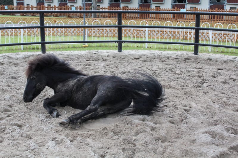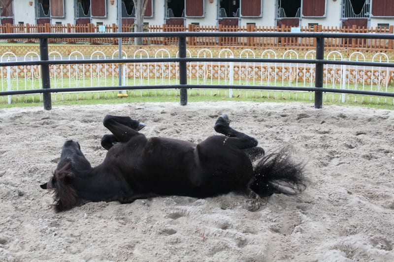 「 ゴロゴロ… 」 体にいっぱいお砂がついてるよ。