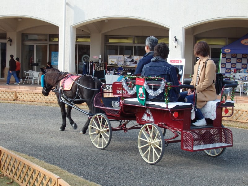 クリスマス仕様になったポニー馬車。ソラやで!