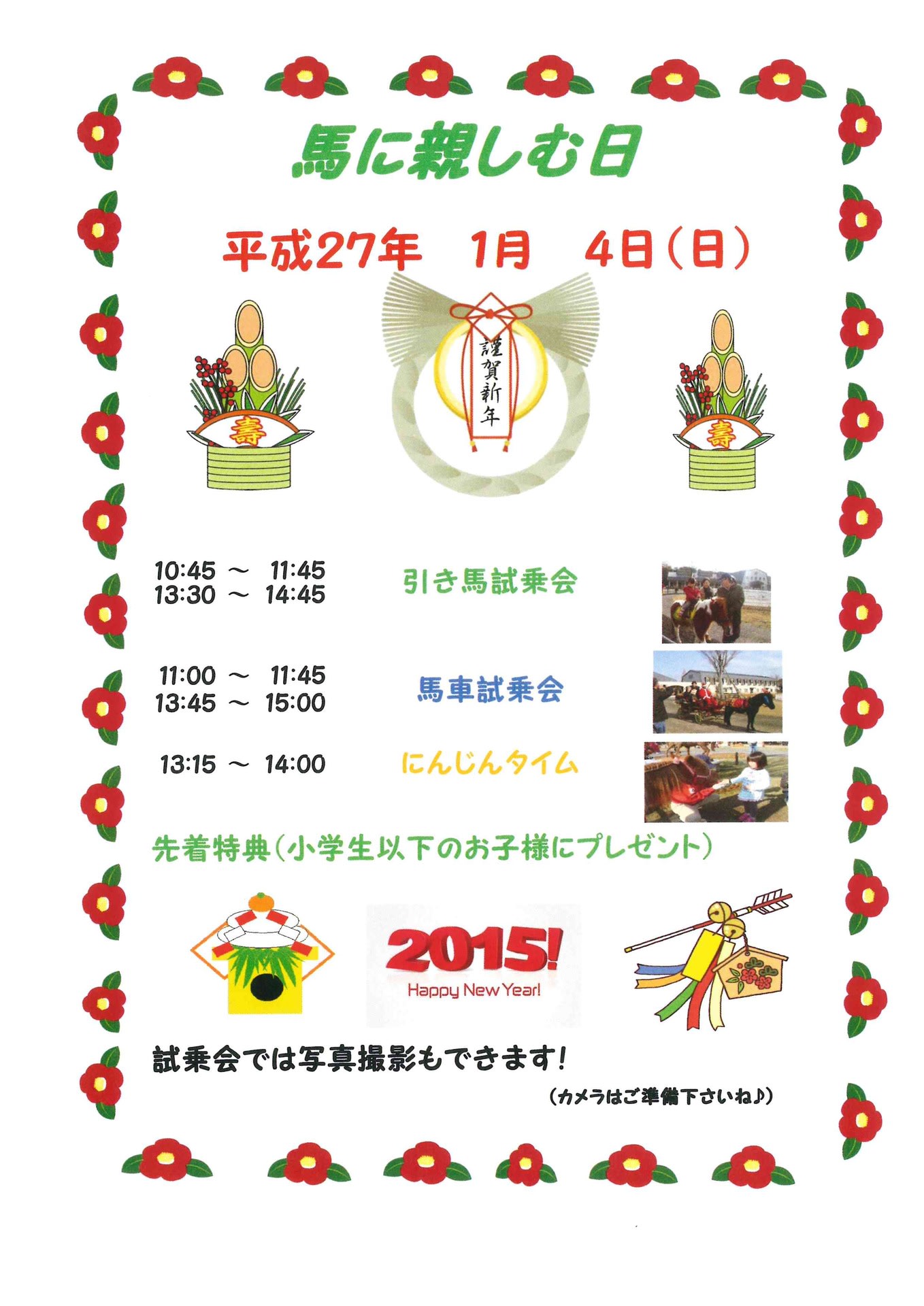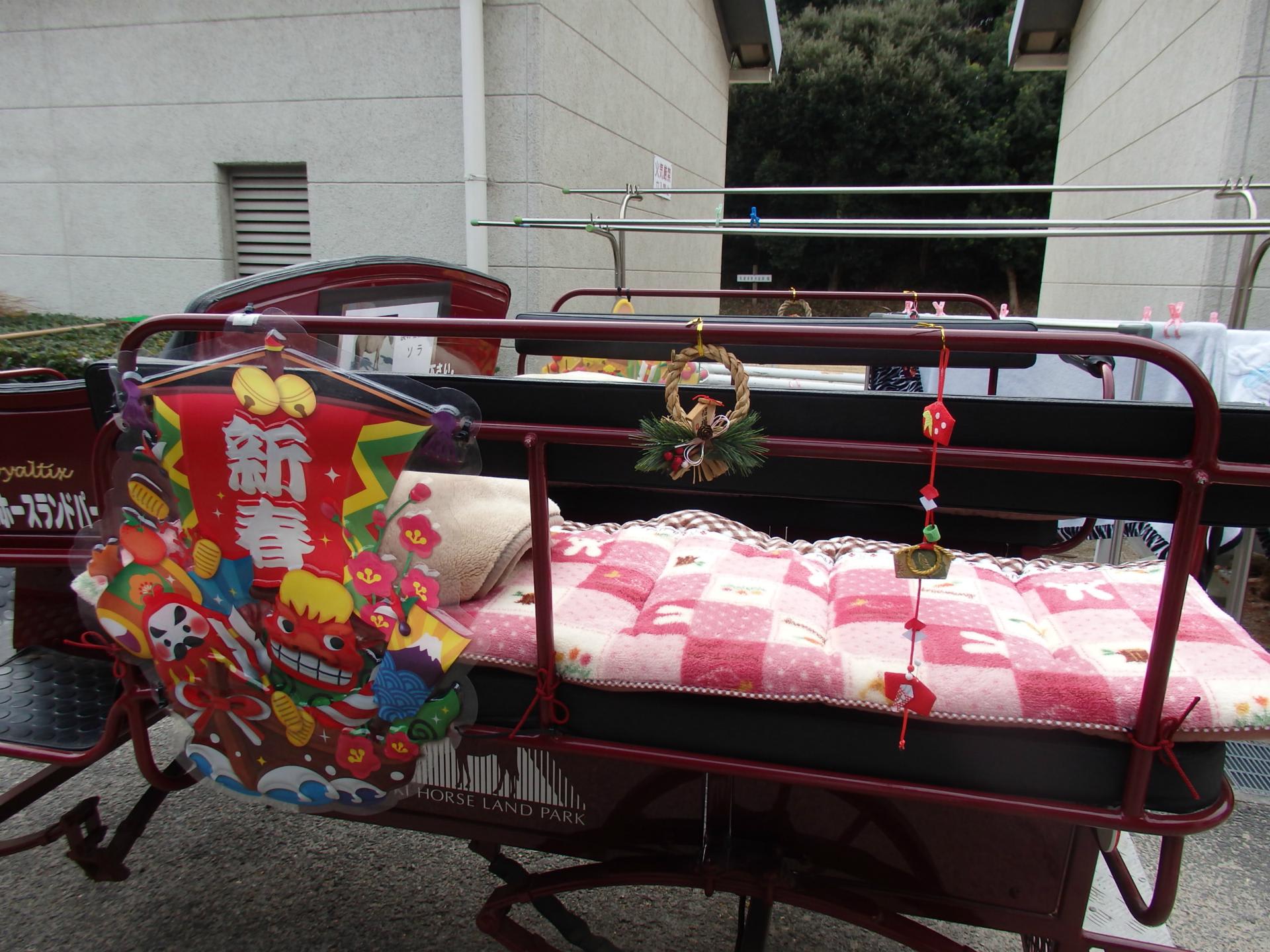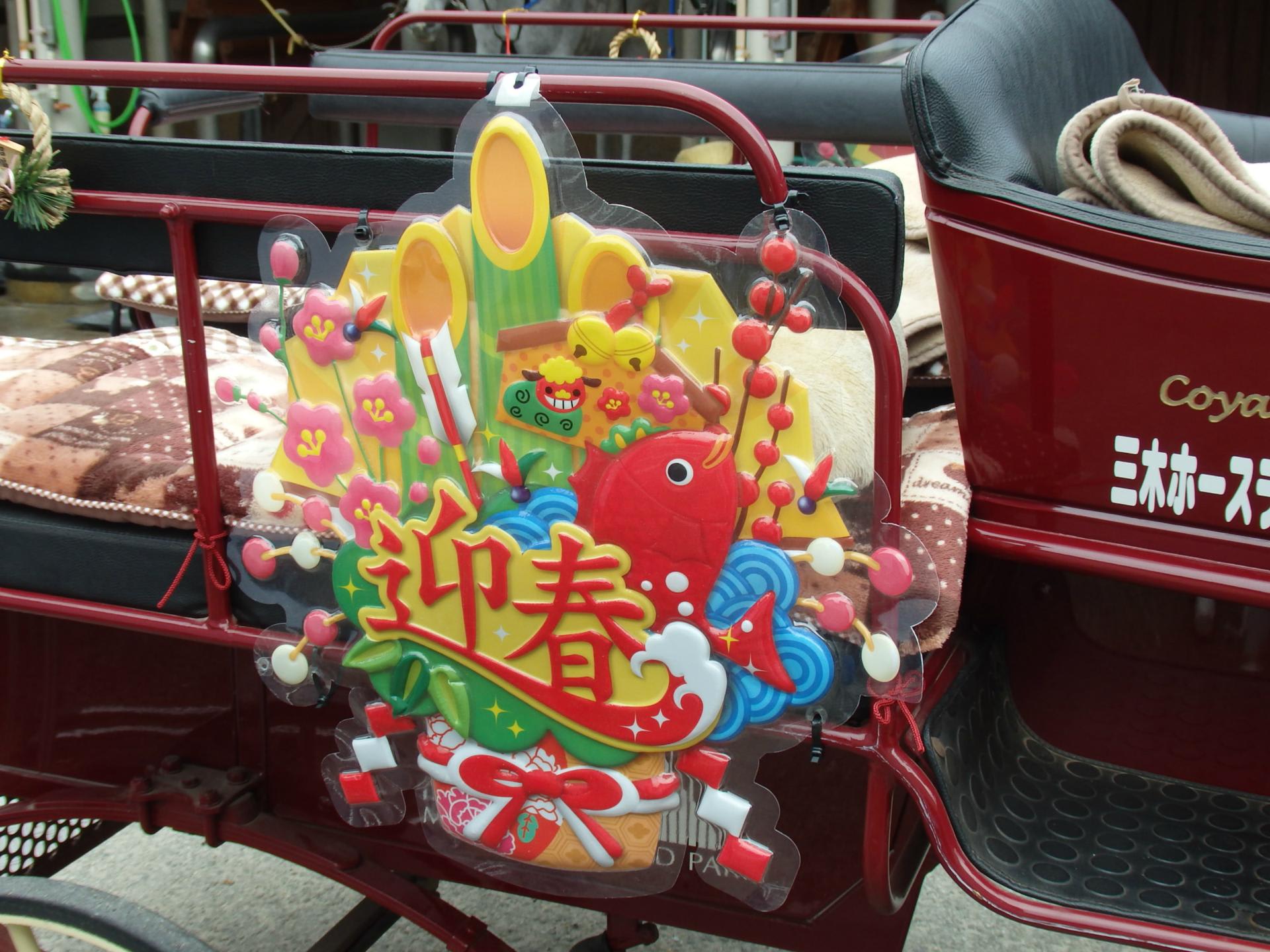 お正月らしい装いのポニーや、