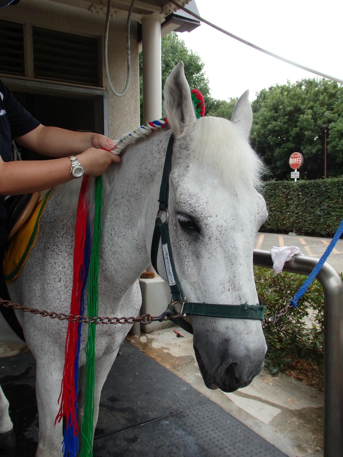 スタッフがたてがみを編んでくれています。