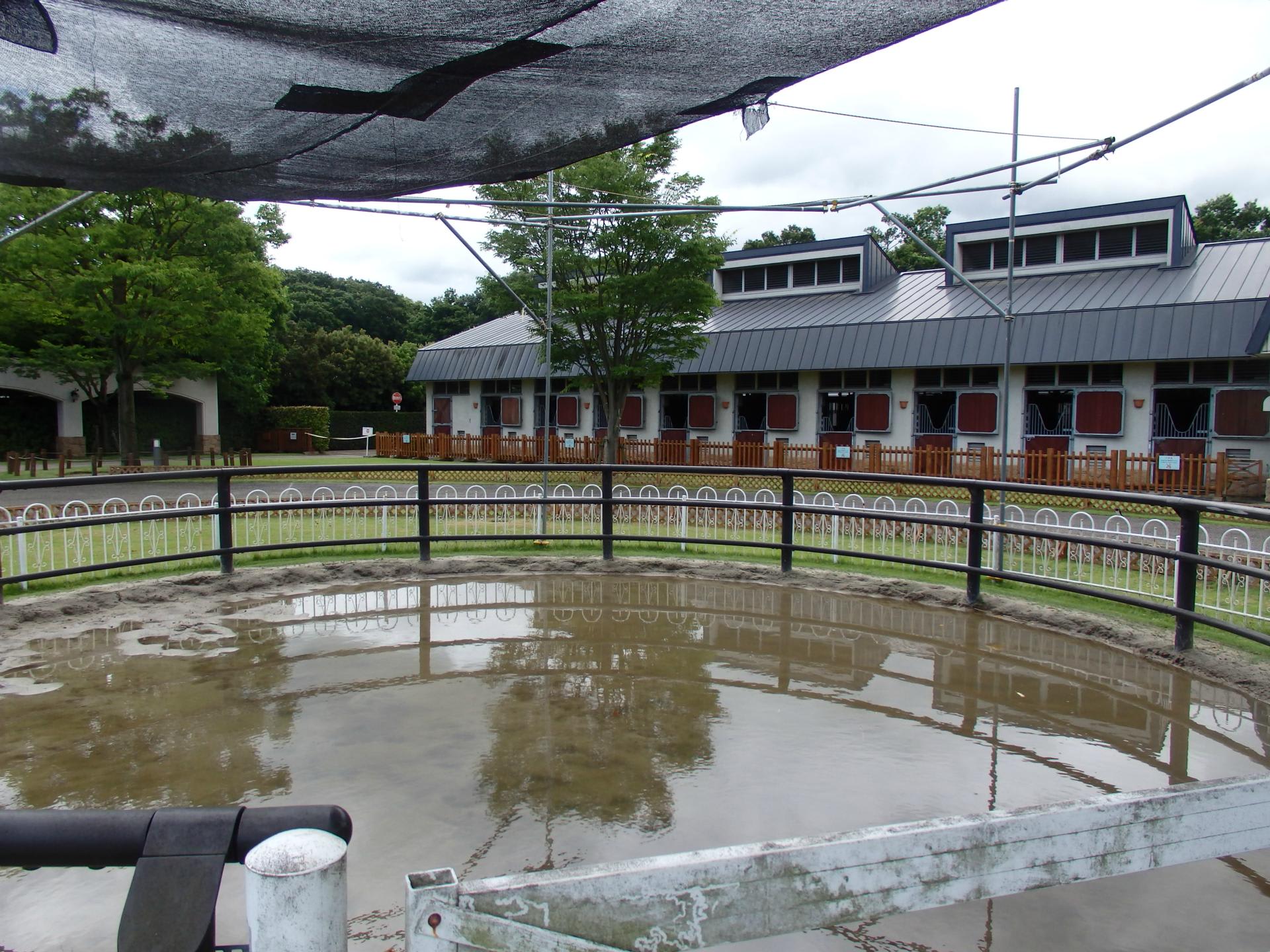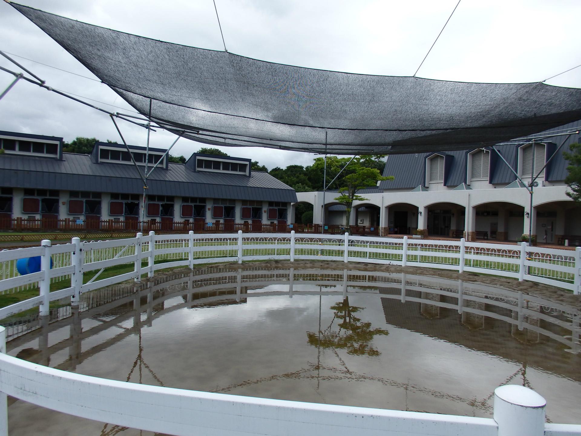 中庭のポニーサークルが池みたいになっていました。