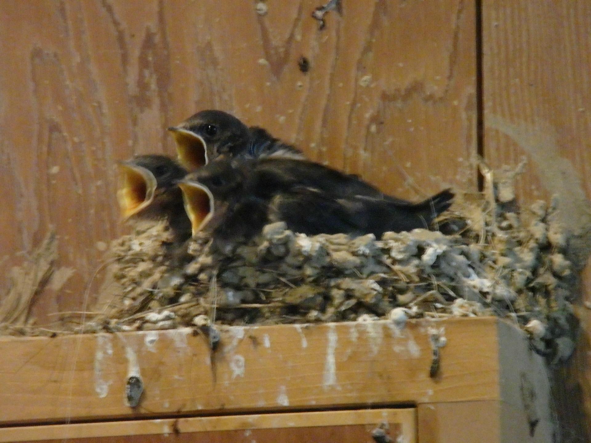 おっきな口をあけるツバメのヒナたち