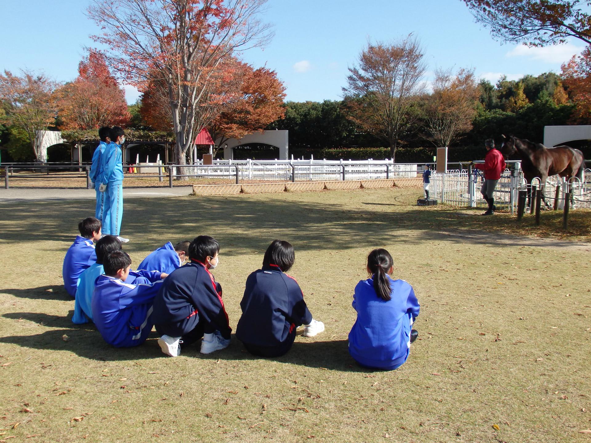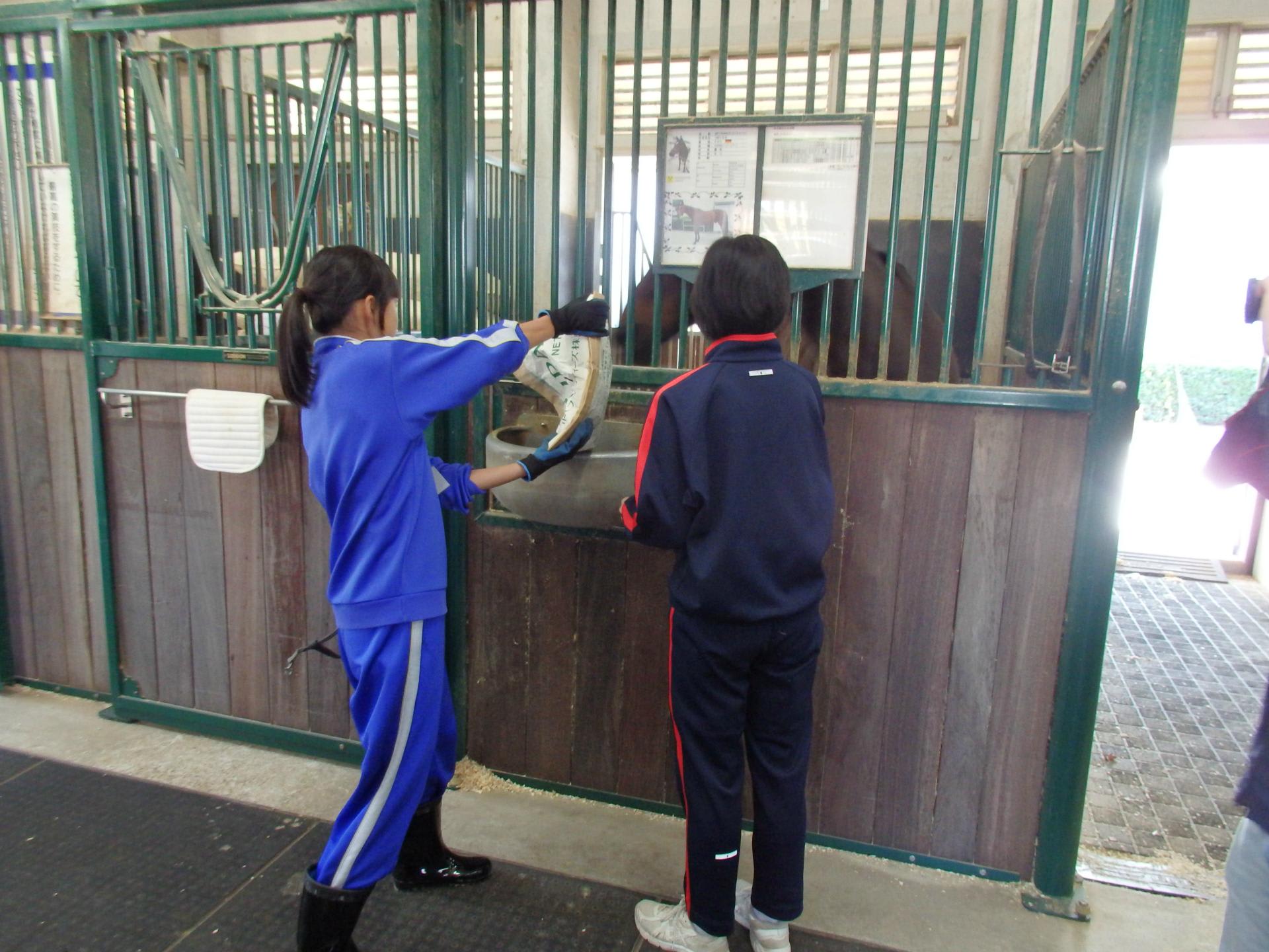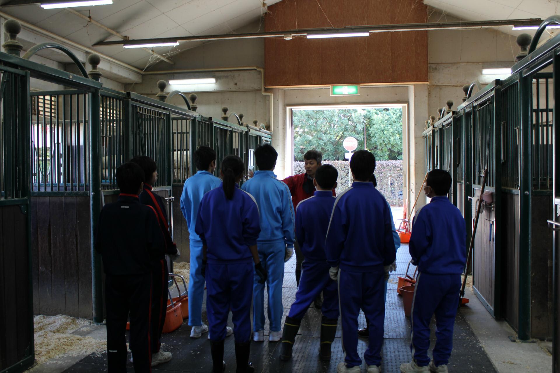 馬に携わる実習をしています。