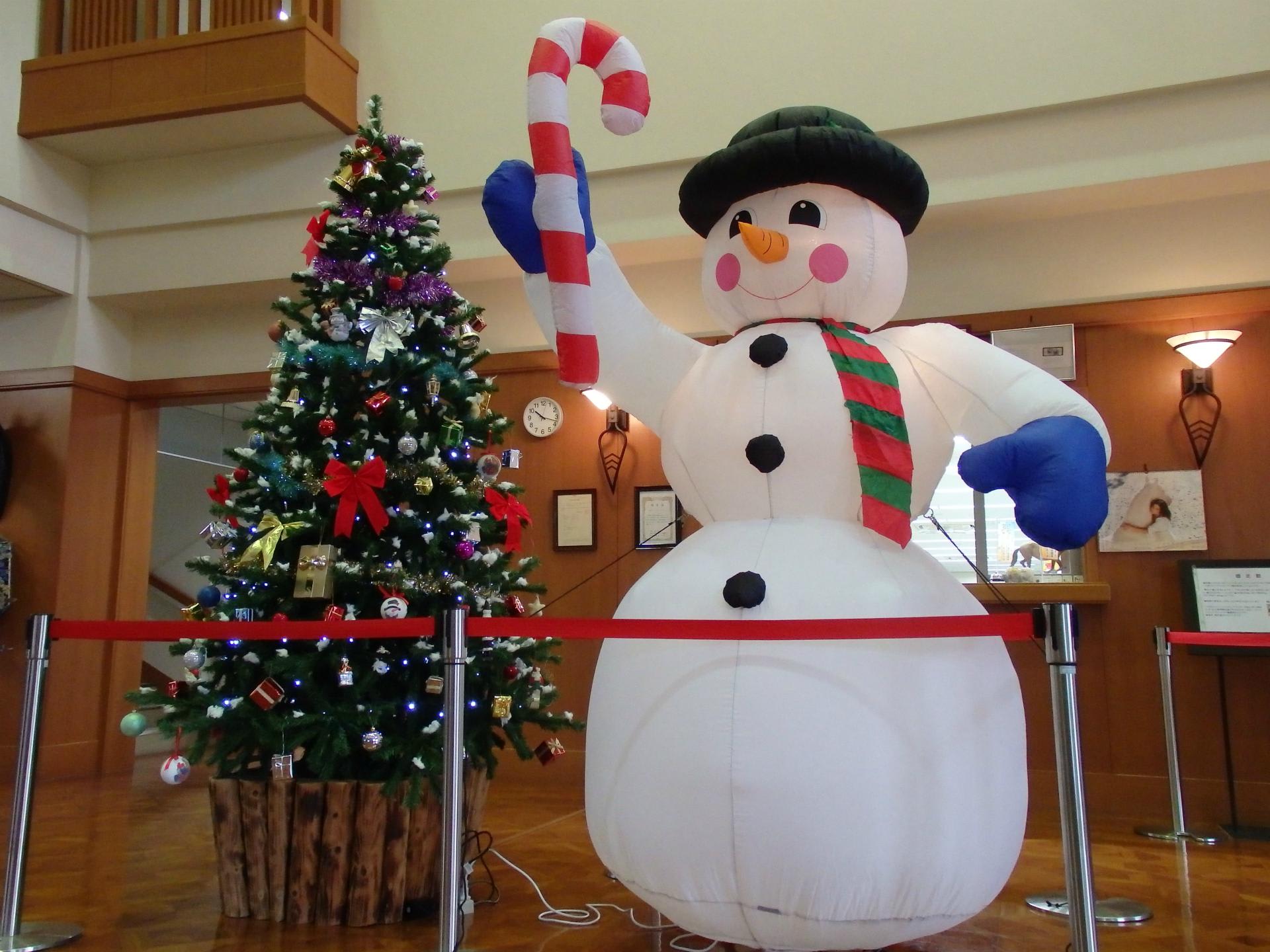 ロビーに設置したツリーやスノーマンとも撮影できますので