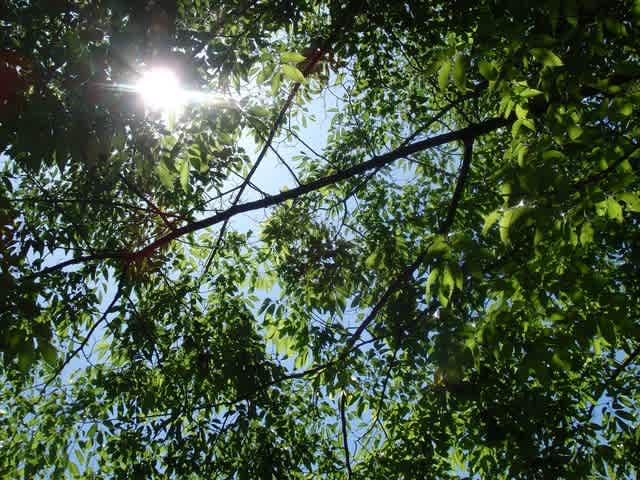 藤棚の下から見上げる緑がキラキラ