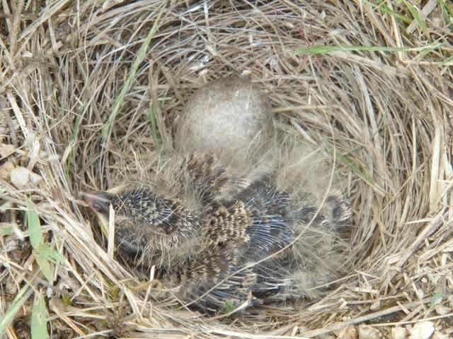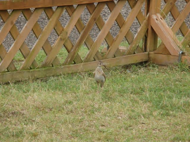 中庭のヒバリさん 一羽ですが…無事に育っています。