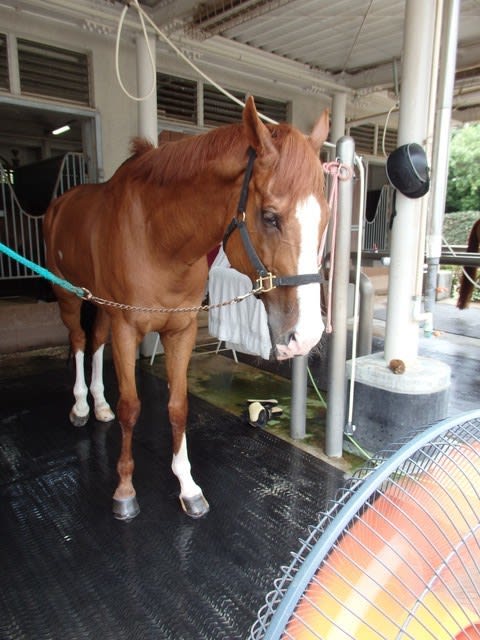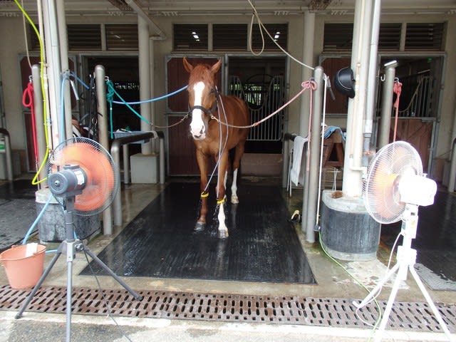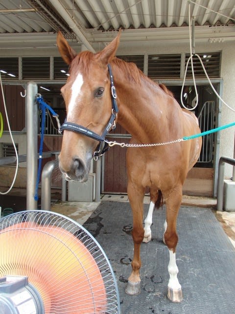 扇風機を2台使ってる エンちゃん(スプラッシュエンド号)