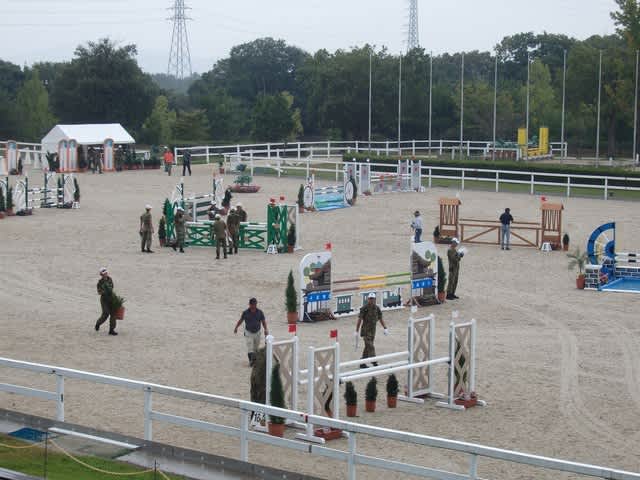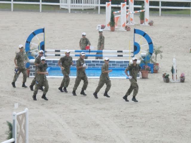 自衛隊の隊員さんと馬術競技関係の方々がテント設営、備品設置の訓練をされています。