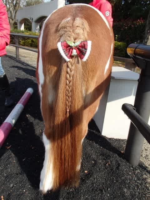たてがみを可愛く編んでもらってる、うとうとラテちゃん。
