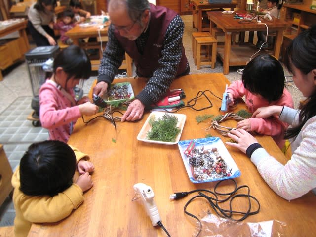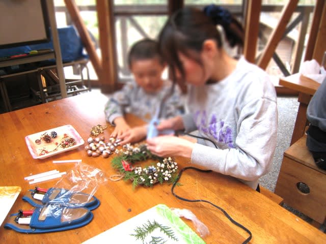 子どもたちも思い思いにリース作りを楽しみました