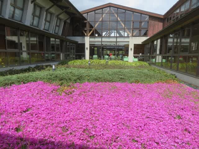中庭のテラスの芝桜も色をそえています。 <4月20日撮影>